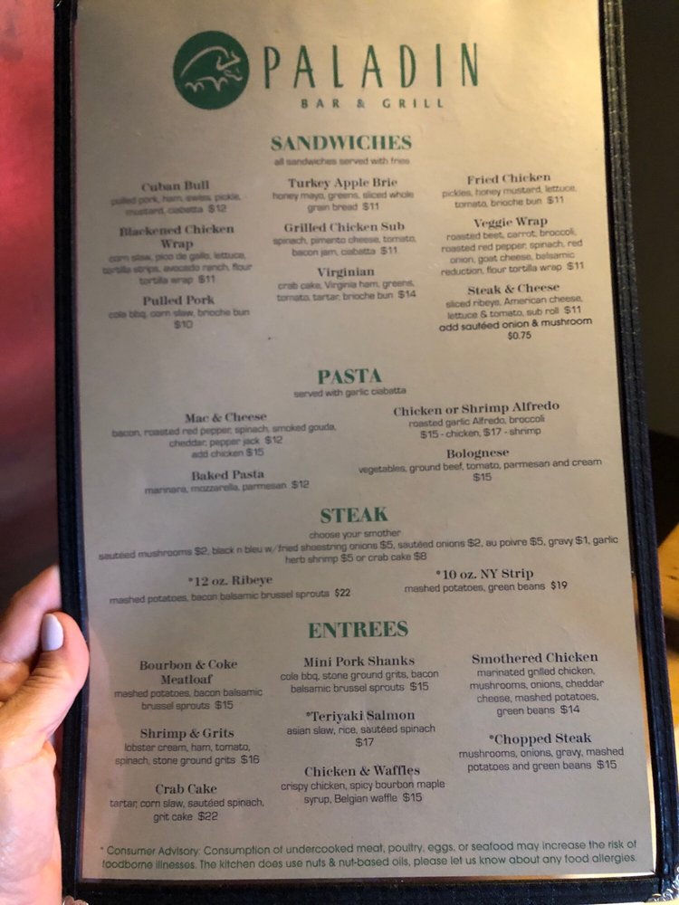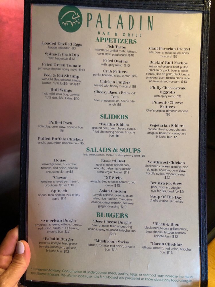 With outdoor seating options, a heated area for colder nights, and a commitment to sustainability, Paladin Bar & Grill is the perfect spot for delicious food and good company.